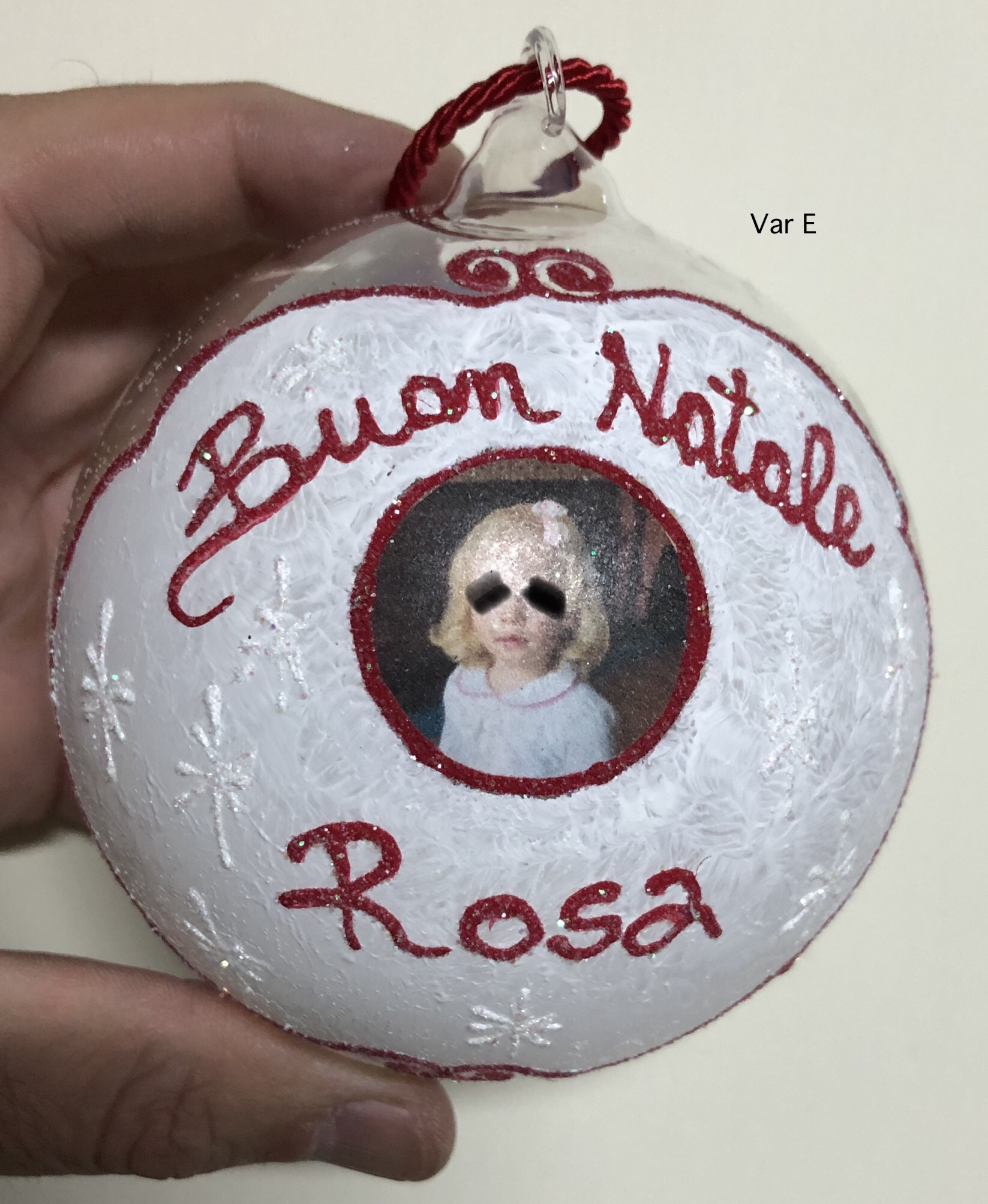 Pallina di Natale realizzata artigianalmente in vetro trasparente decorato con pittura, vostra foto e scritta personalizzabile